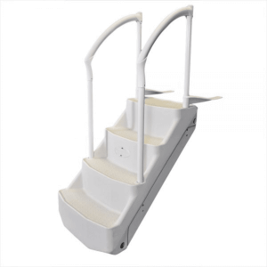 L’échelle sécuritaire de marque Olympic pour piscines hors-terre est munie d’un couvercle à fermeture et d’un verrouillage automatique.